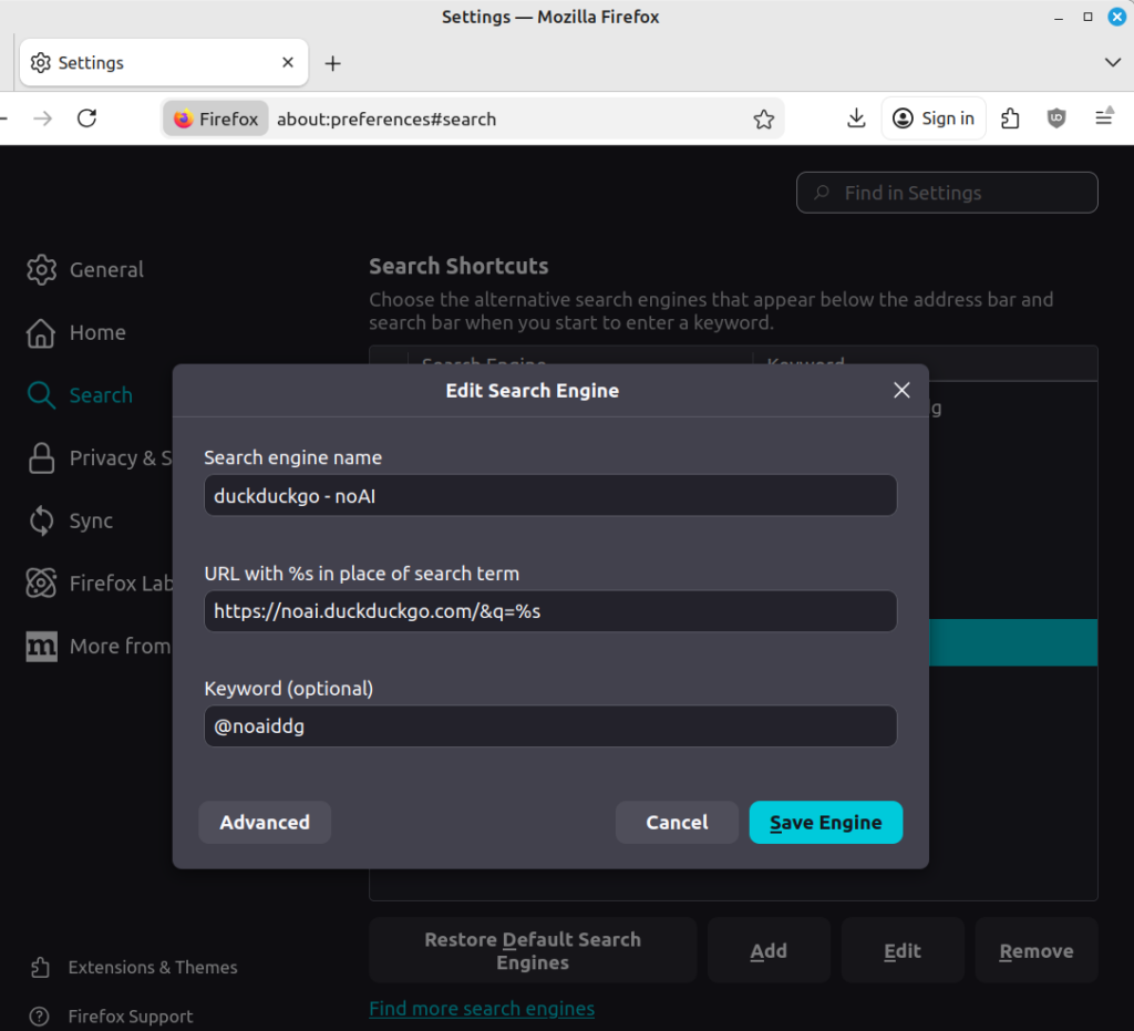 Most browsers, even open source ones like Firefox, ship with Google as the default search engine. This means that our most intimate details can be immediately sent to Google, which holds a near-total monopoly on web searches with over 90% of the market share. As well, searches on Google are now processed by Gemini, an AI engine, with negative consequences: AI models are terrible for privacy and contribute to climate chaos.
